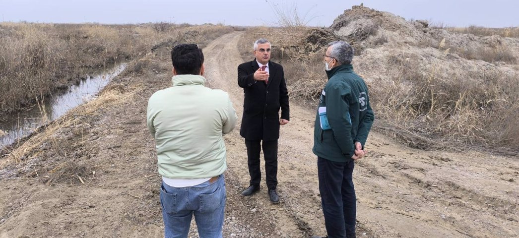 Bölge Müdürümüz Sayın Serdar KOTAN, Makine İmalat ve Donatım Şube Müdürü Cesim GÜVEN, 242. Şube Müdür V. Kenan ALAGÖZ, Yeşil Iğdır Sulama Birliği Başkanı Kürşat KARABACAK ve teknik personeller, Iğdır ilimiz sınırları dâhilinde yapım çalışmaları devam eden; Iğdır - Aralık 1. Kısım AT ve TİGH projesi ile Doğu ve Batı Iğdır Sulama alanlarında bulunan tahliye ve drenaj kanallarında Kurumumuz ekip ve ekipmanları ile yapılmakta olan rüsubat temizliği çalışmalarını incelemişlerdir.