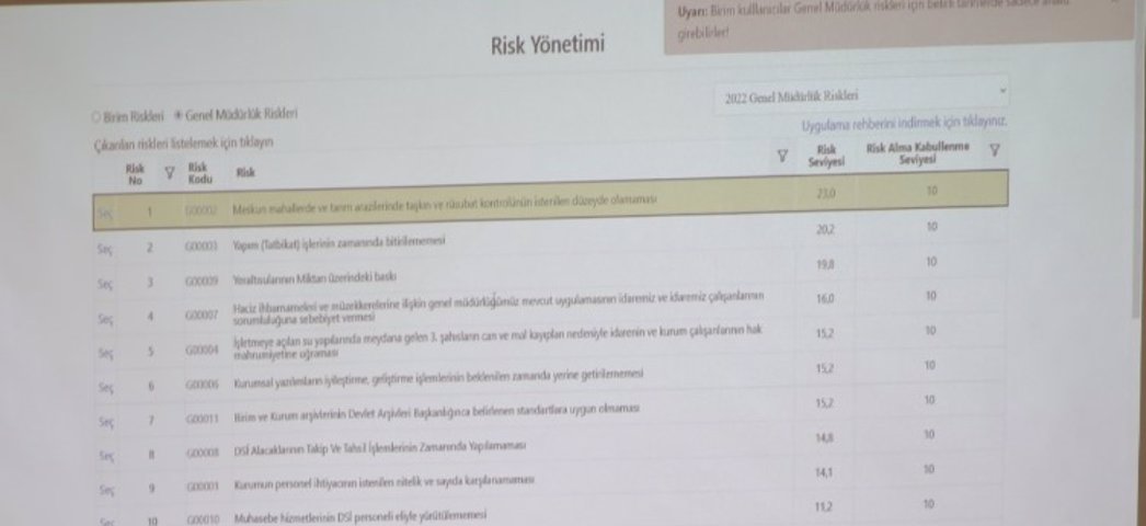 DSİ 24. Bölge Müdürlüğümüz sınırları dâhilinde bulunan ve yapımına devam edilen işlerle alakalı olarak Bölge Müdürümüz Sayın Şükrü BAYSAL, Bölge Müdür Yardımcısı Sn. Kenan ÇELİK ve ilgili Şube Müdürlerinin katılımları ile Bölge Müdürlüğümüz Toplantı Salonunda Risk Yönetimi Değerlendirme Toplantısı yapılmıştır. Toplantında; 2021 yılına kadar yapılan imalatlar, 2022 yılı mevcut ödeneğinden yapılması planlanan imalatlar görüşülmüş ve 2022 yılı çalışma sezonunun verimli kullanılması ve hedeflerimizin gerçekleşmesi adına istişare edilmiştir.